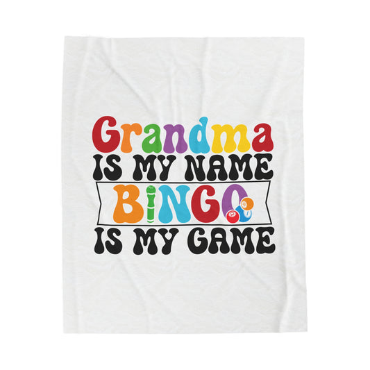 Grandma Bingo Plush Blanket, Cozy Gift for Grandparents, Soft Velveteen Throw for Family Gatherings, Birthday, Mother's Day